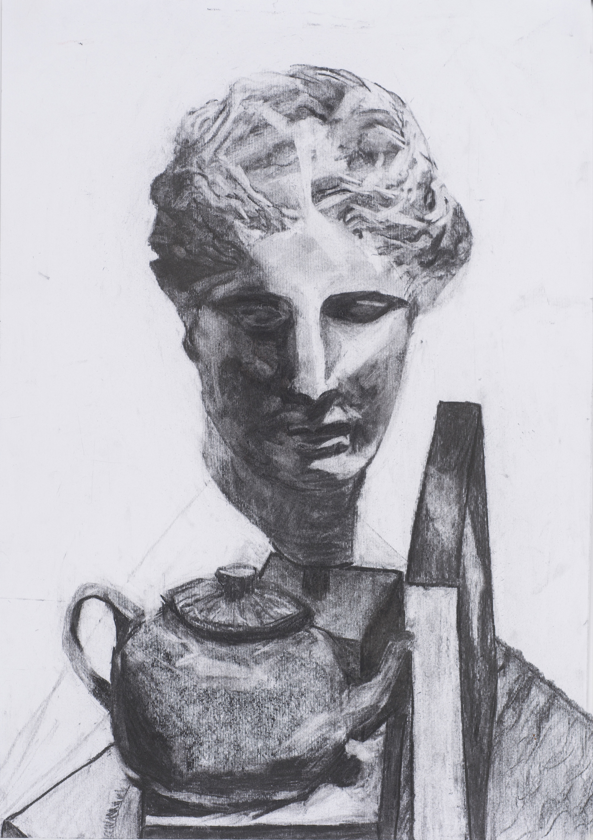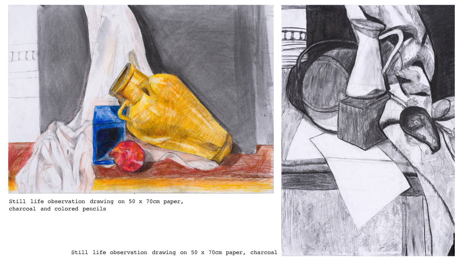 Still obeservation drawing on 50 x 70cm paper, charcoal